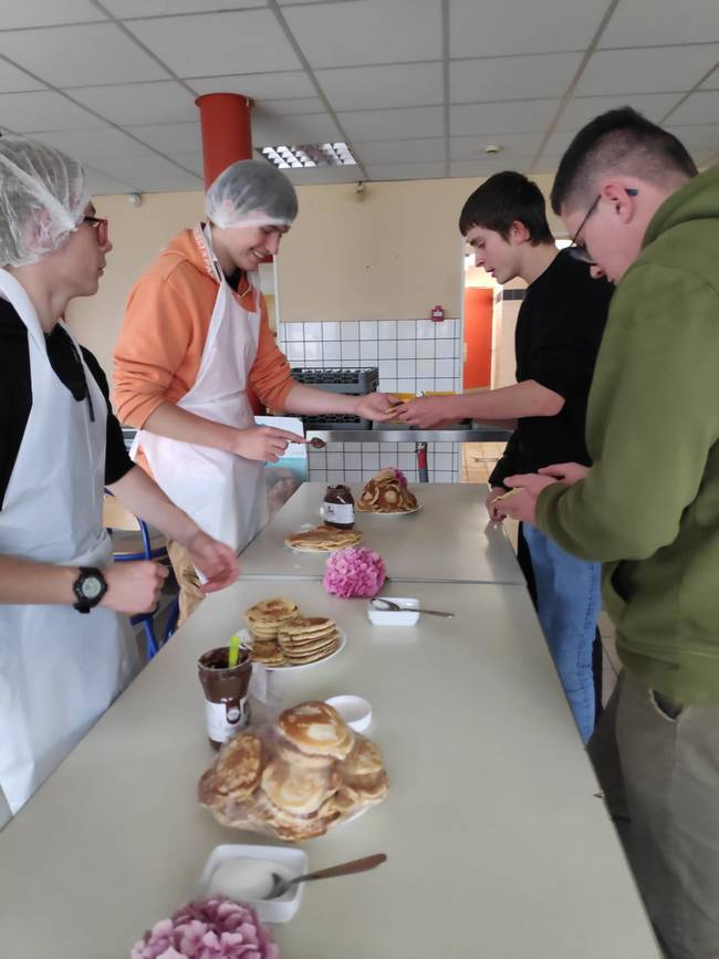 Atelier Pancakes  Le jeudi 17 octobre 2024, dans le cadre de l'EPI "Transformation des produits agricoles", les jeunes du groupe de 3 ème, ont concocté des pancakes pour le goûter de tous les élèves de la MFR.